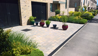 ACO provides a suitable drainage solution at driveway entrances, garage thresholds and parking areas throughout this project.