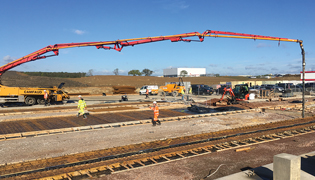 In Mansfield Brick’s manufacturing facility in Nottinghamshire, high-capacity ACO Qmax was chosen in the loading area, as it reduced the number of runs required while allowing a very shallow fall pavement to be cast. This fulfilled the health and safety requirements to keep the pavement as level as possible.